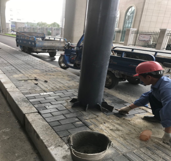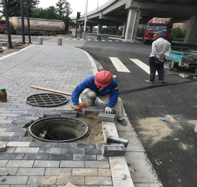 提升窨井口高程后修補(bǔ)人行道磚