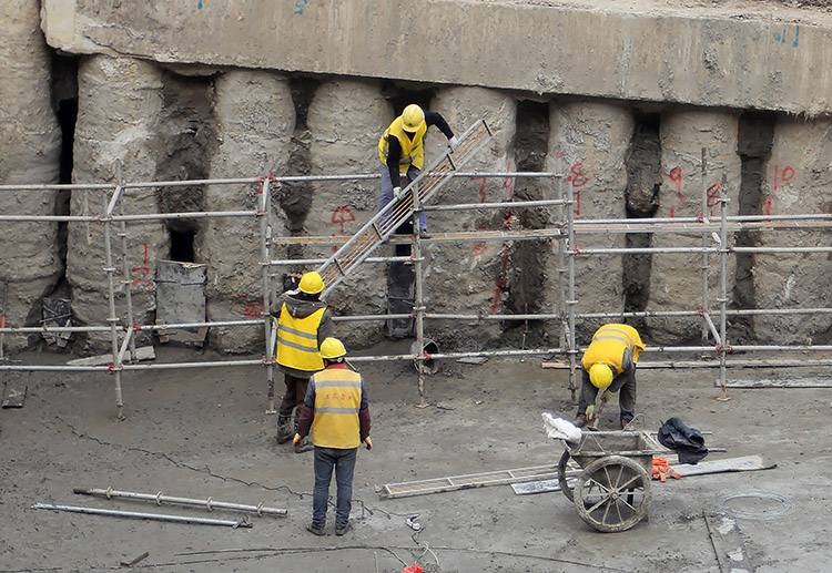 圖為工人們準(zhǔn)備U型槽施工