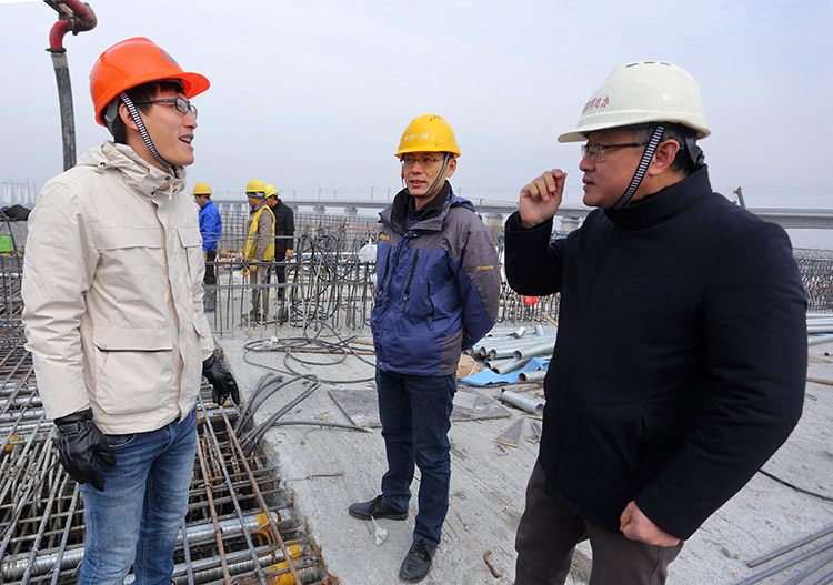 圖為高架辦工程管理人員在現(xiàn)場(chǎng)督查