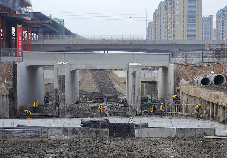 黃海路高架是我市高架三期工程的重要組成部分,上跨新長(zhǎng)鐵路、下穿徐鹽高鐵段,全長(zhǎng)313.5米。該段施工受鐵路運(yùn)營(yíng)制約,施工組織相對(duì)困難,加上今年又因遭遇疫情,因此至今尚未能建成通車。通過(guò)與鐵路代建單位緊密對(duì)接,科學(xué)有序推進(jìn)項(xiàng)目施工,黃海路高架代建段建設(shè)現(xiàn)場(chǎng)一片熱火朝天。